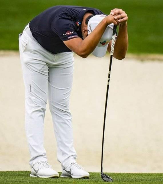 2라운드 당시 퍼팅이 뜻대로 되지 않자 홧김에 퍼터를 바닥에 내려찍어 샤프트가 휘어지는 일이 발생했는데요.
